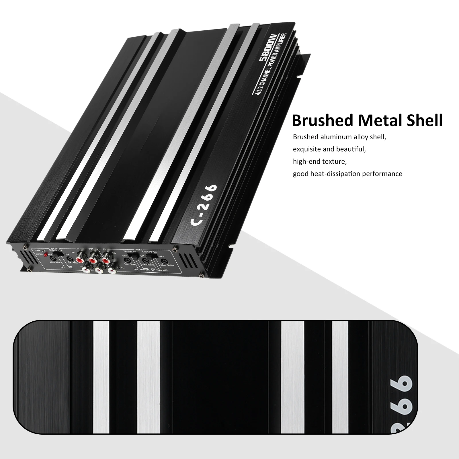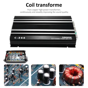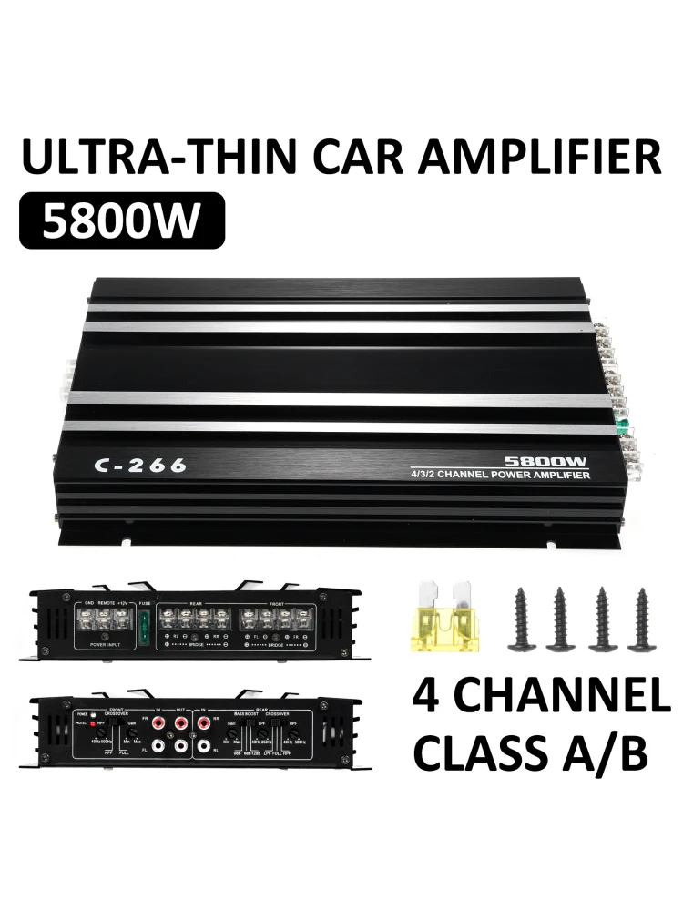 Upgrade your car audio system with this high-power 4-channel amplifier. Delivering up to 5800W of clean, crisp sound, it’s perfect for driving deep bass, clear mids, and sharp highs in any vehicle. Its ultra-thin design makes installation easy even in tight spaces, while Class A/B circuitry ensures efficient, high-quality performance.