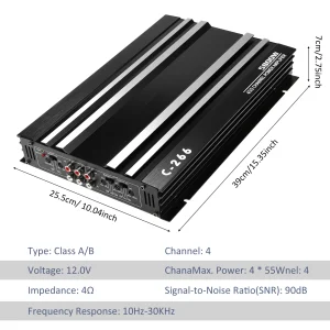 Ideal for audiophiles, car enthusiasts, or anyone looking to level up their in-car sound, this amplifier works with a variety of setups and speakers to deliver professional-grade audio on the go.